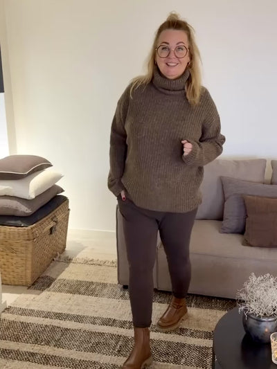 Rullekraven har normal pasform - den er designet til at sidde til, men den er dog dejlig stretchy - ønsker du et mere oversize look, så gå endelig en størrelse op.