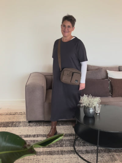 Vores bløde skønne loose fit kjole, lavet i den blødeste kvalitet bestående af 50% modal 50% bomuld. Kjolen har raglan ærmer og en lille slids.